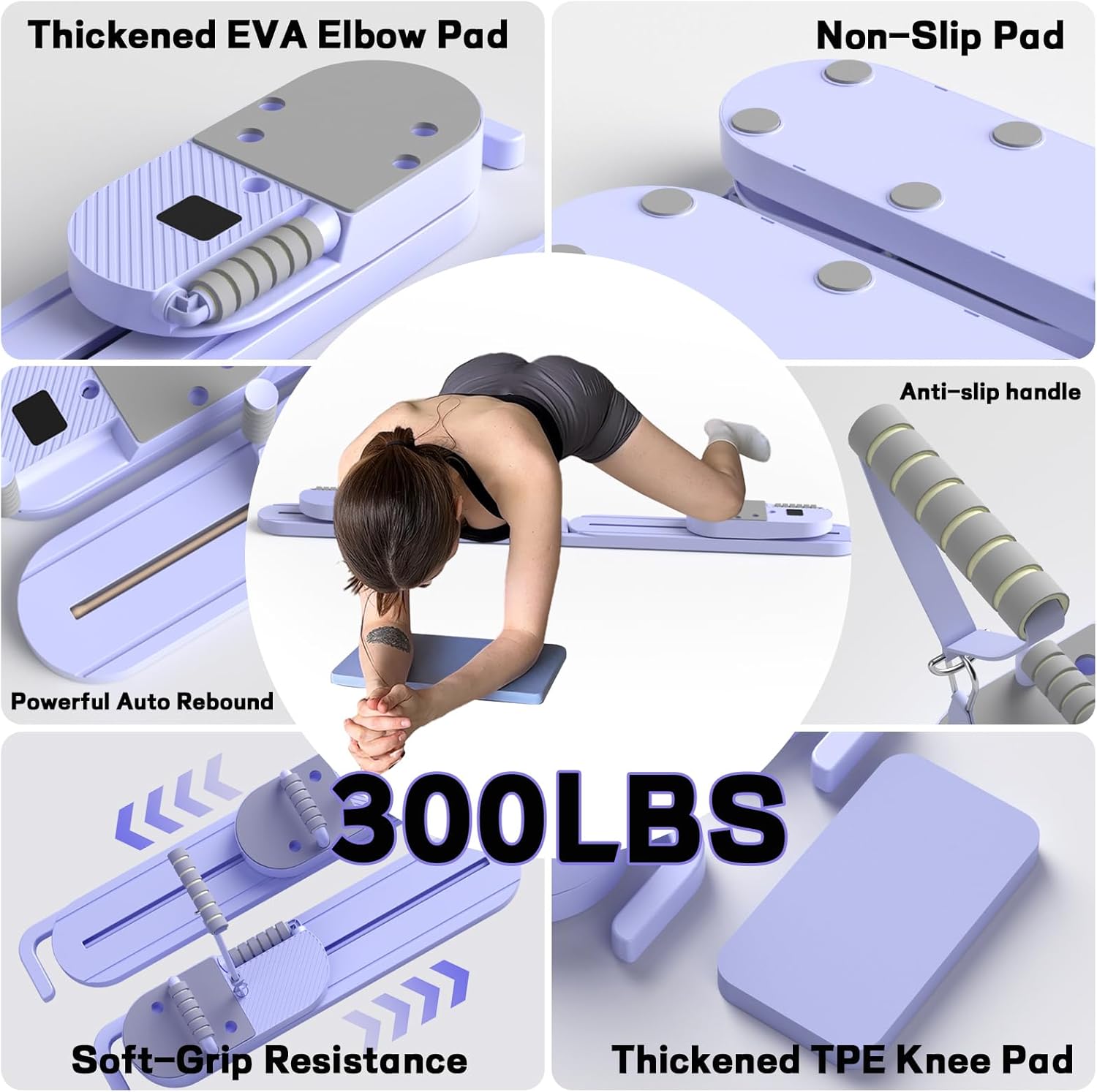 All-in-One Versatile Pilates Equipment – Flexella Multi-function ski exercise machine combines ski machine, pilates board, resistance band, ab roller, balance board and push-up handle. It can meet your diverse fitness needs.