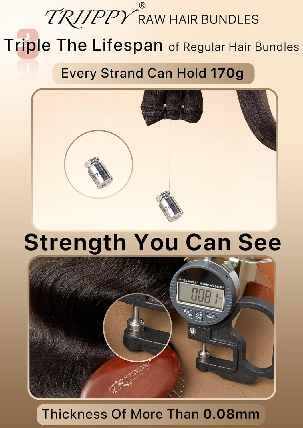 TRIIPPY Body Wave Bundles Human Hair,100% Raw Cambodian Hair Wavy 3 Bundles 16 16 16 Inches,Triple The Lifespan Over Regular Virgin Hair Bundle,No.1 Raw Hair Brand On Amazon(Natural Color)