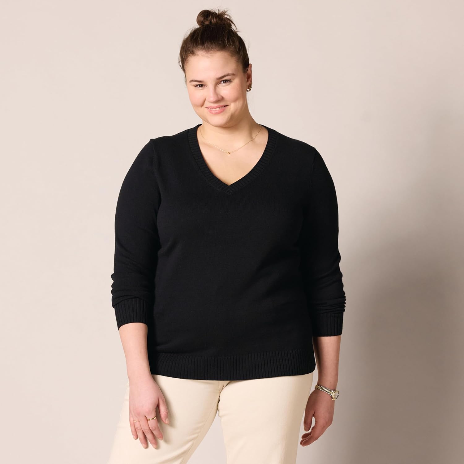 Amazon Essentials Women’s Lightweight Long-Sleeve V-Neck Sweater, 100% Cotton
