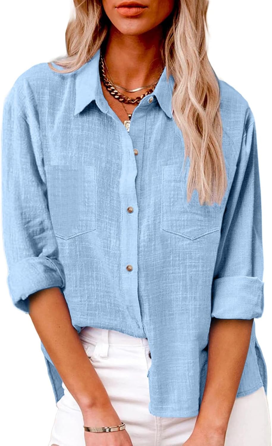 Linen Shirts for Women Long Sleeve Button Down Collared Tops Loose Fit Gauze Blouses 2025 Summer Clothes