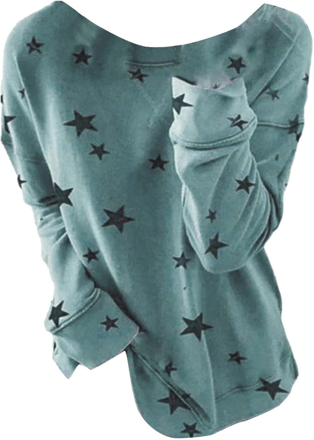 Womens Sweatshirt Crew Neck Star Graphic Pullover Tops 2024 Fall Casual Long sleeve Oversized Sweatshirt