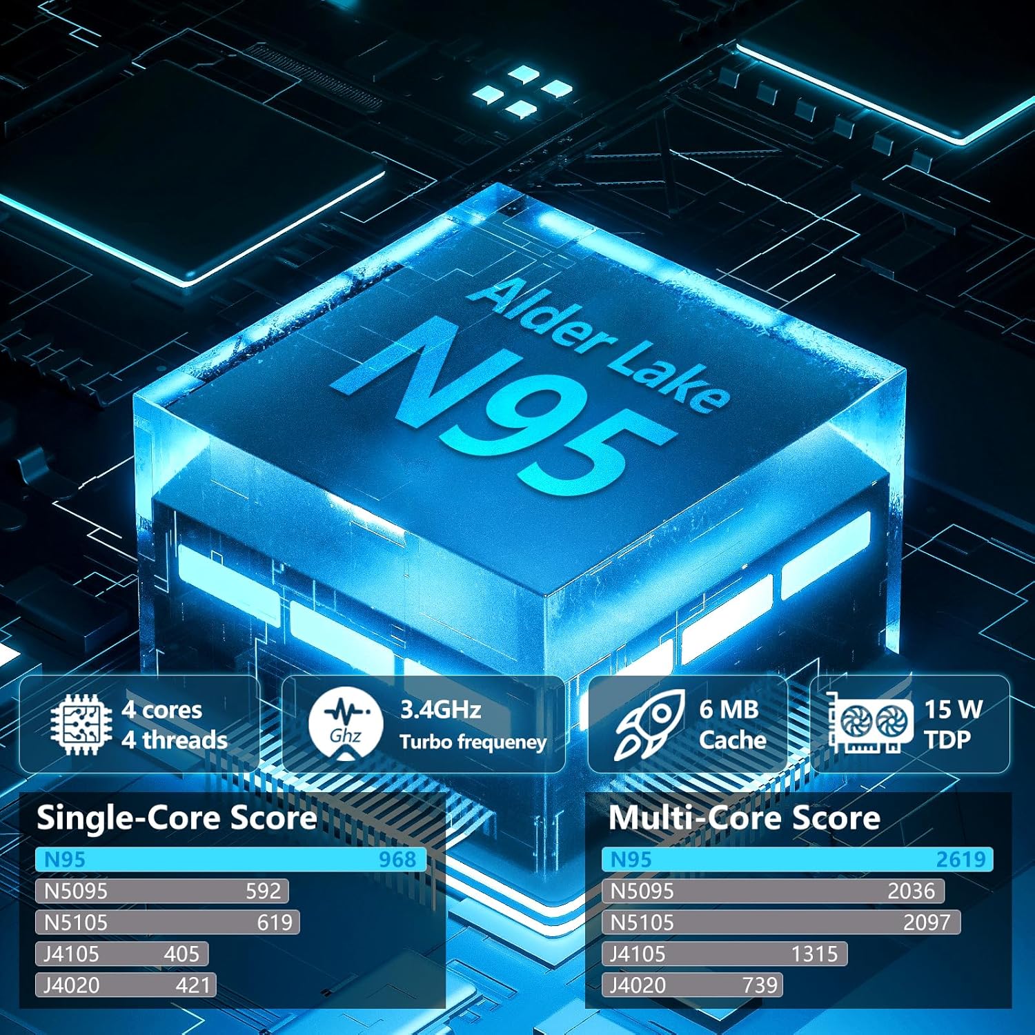 【Performance Processor】 Equipped with 12th generation Celeron N95 processor (4-core, 4-thread, up to 3.40 GHz, 3-level cache: 6 MB) and integrated UHD graphics (up to 750 MHz). Capable of efficient multitasking.